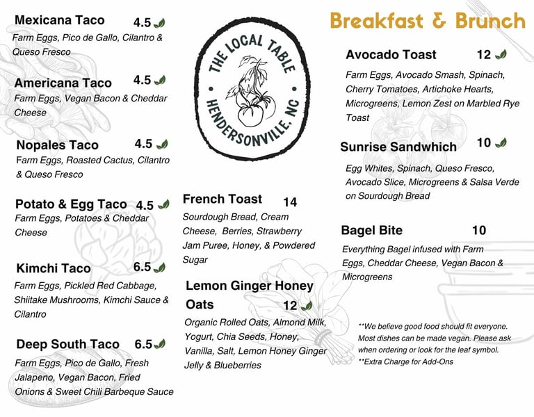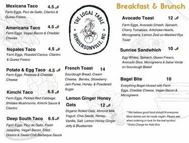 The Local Table is OPEN! Join us for breakfast, brunch & lunch 6:30-3:00.